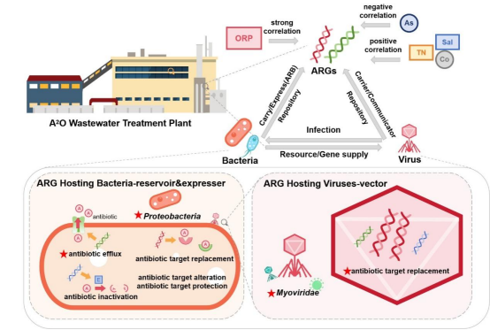 1月,我校生态环境工程技术研发中心吕斯濠教授团队的刘倩副研究员在环境领域国际知名期刊Water Research发表题为Bacterial, viral and environmental interactions shape antibiotic resistance genes in China’s anaerobic-anoxic-oxic wastewater treatment systems的研究论文。该成果以东莞理工学院为第一署名单位,刘倩副研究员为第一作者,硕士生陈洁为第二作者,中国科学院天津工业生物技术研究所黄聪研究员、哈尔滨工业大学(深圳)王爱杰教授为共同通讯作者。研究得到国家自然科学基金、天津市合成生物技术创新能力提升项目以及中国科学院环境生物技术重点实验室开放课题等项目的联合资助。