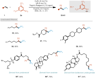 图2. 在非活化烯烃和药物分子后修饰中的应用