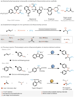 图1. β-三氟甲基胺类化合物的重要性及其合成策略